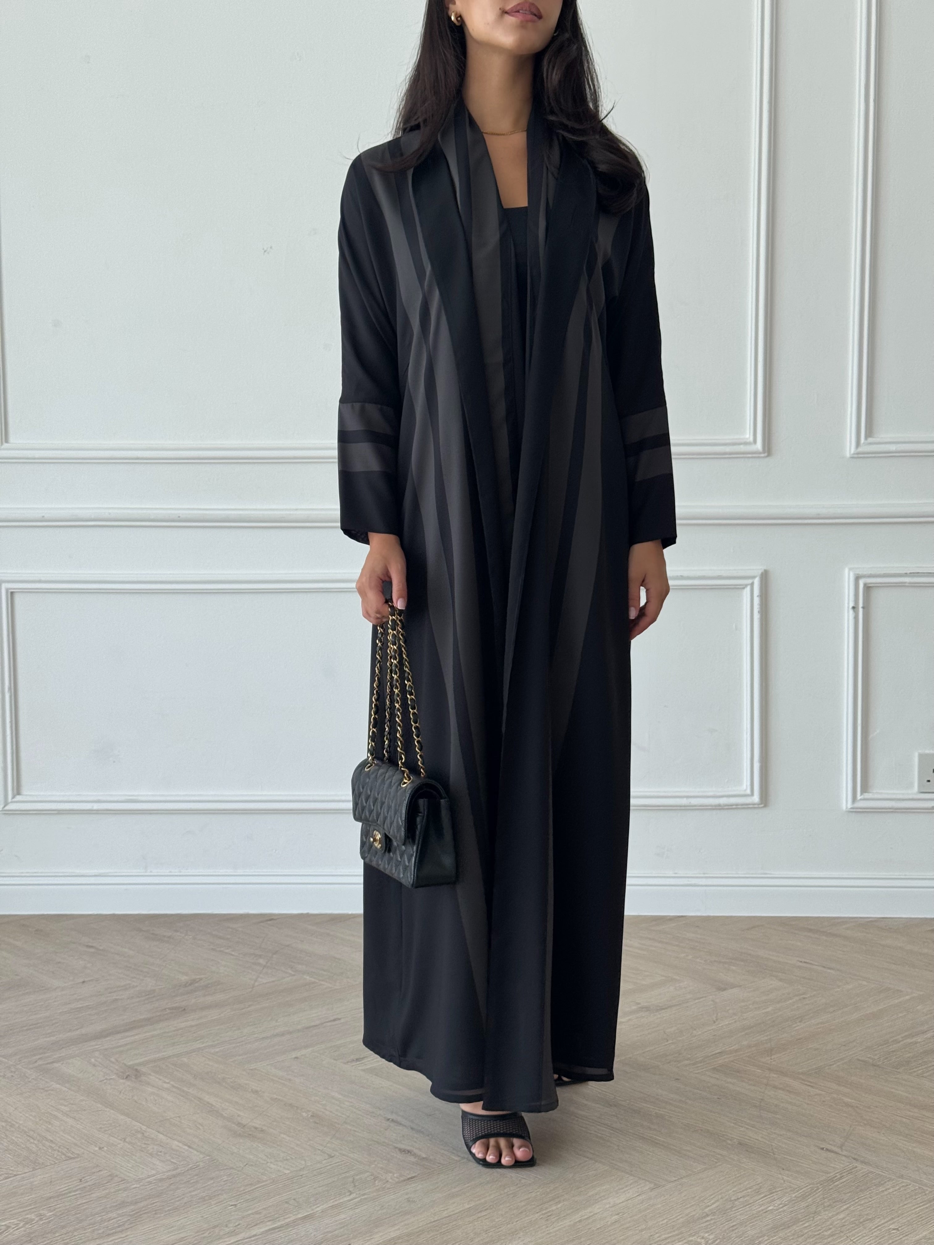 • Abaya and shaila fabric is printed chiffon, abaya is fully lined with plain chiffon.
