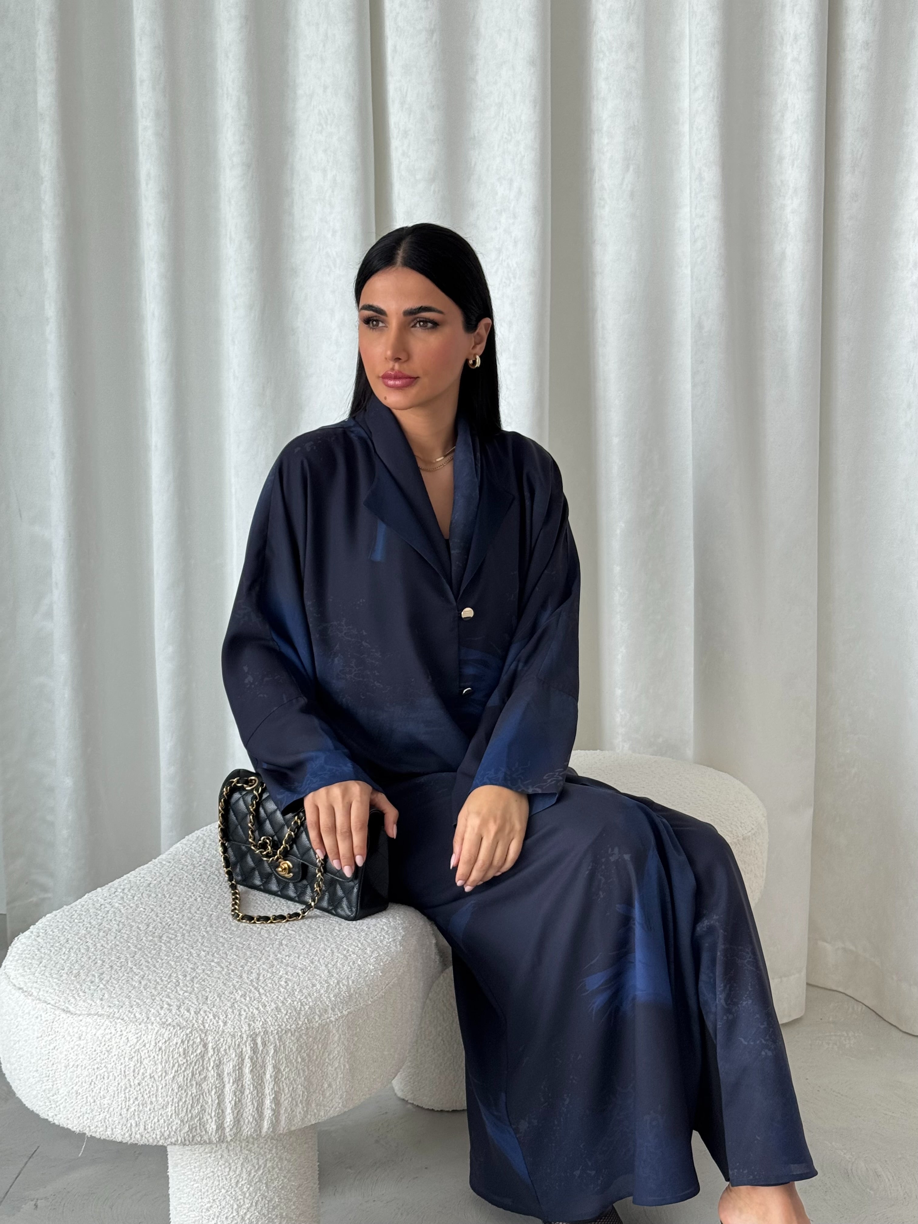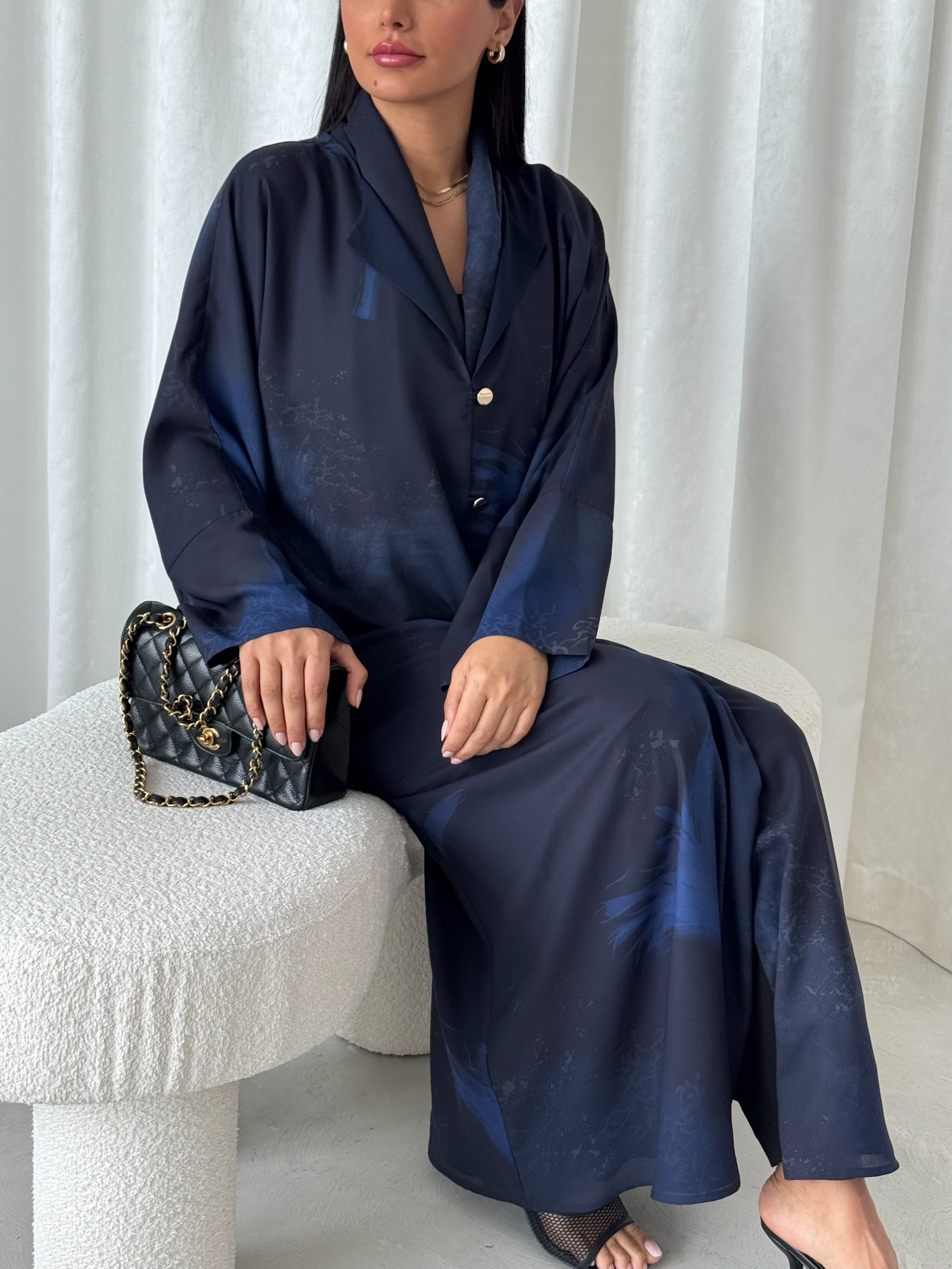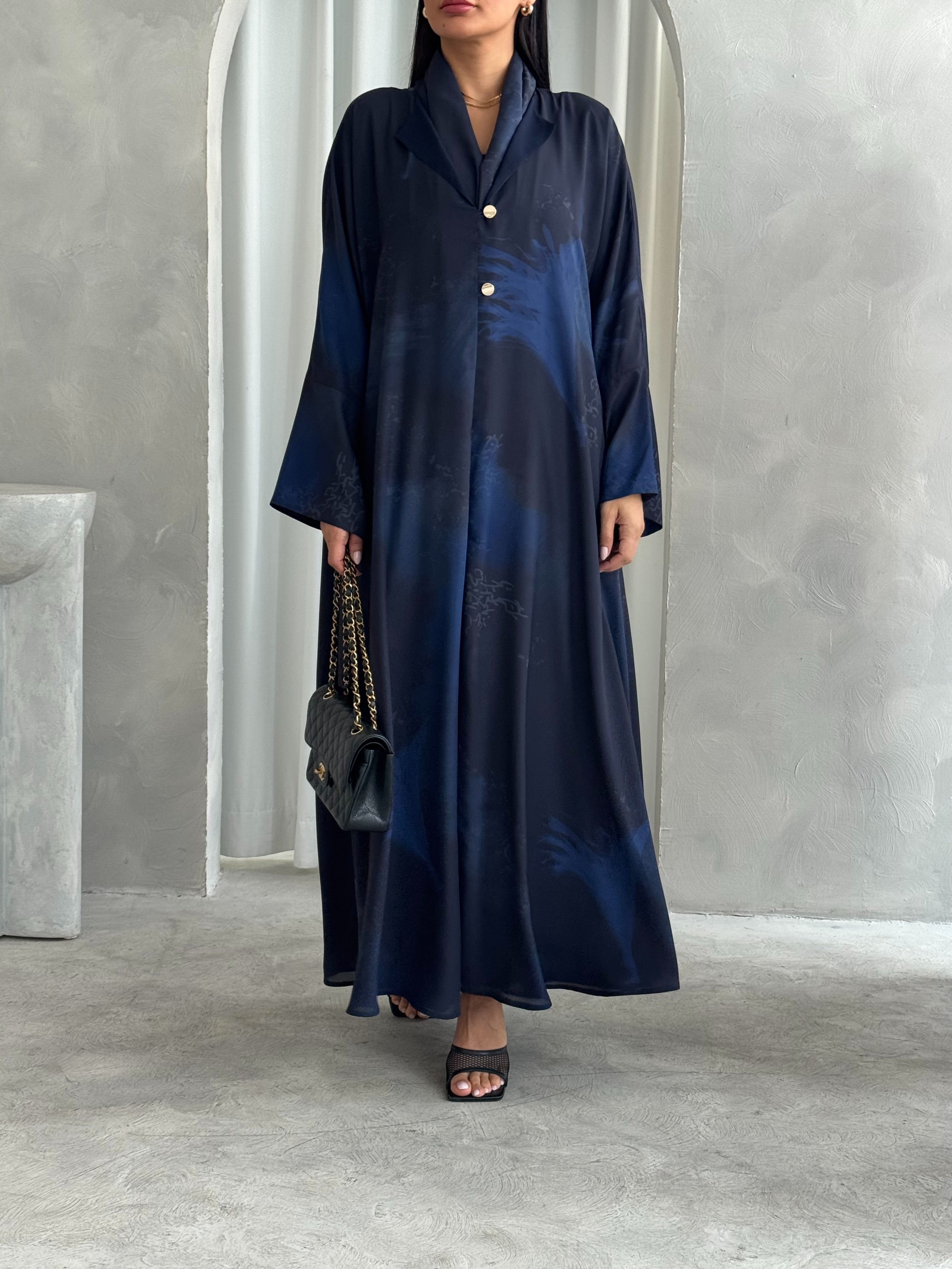 - Abaya fabric; printed chiffon with plain chiffon lining. - Shaila fabric; printed chiffon. - Model is 177cm wearing size small with customized length of 58.5 inches.