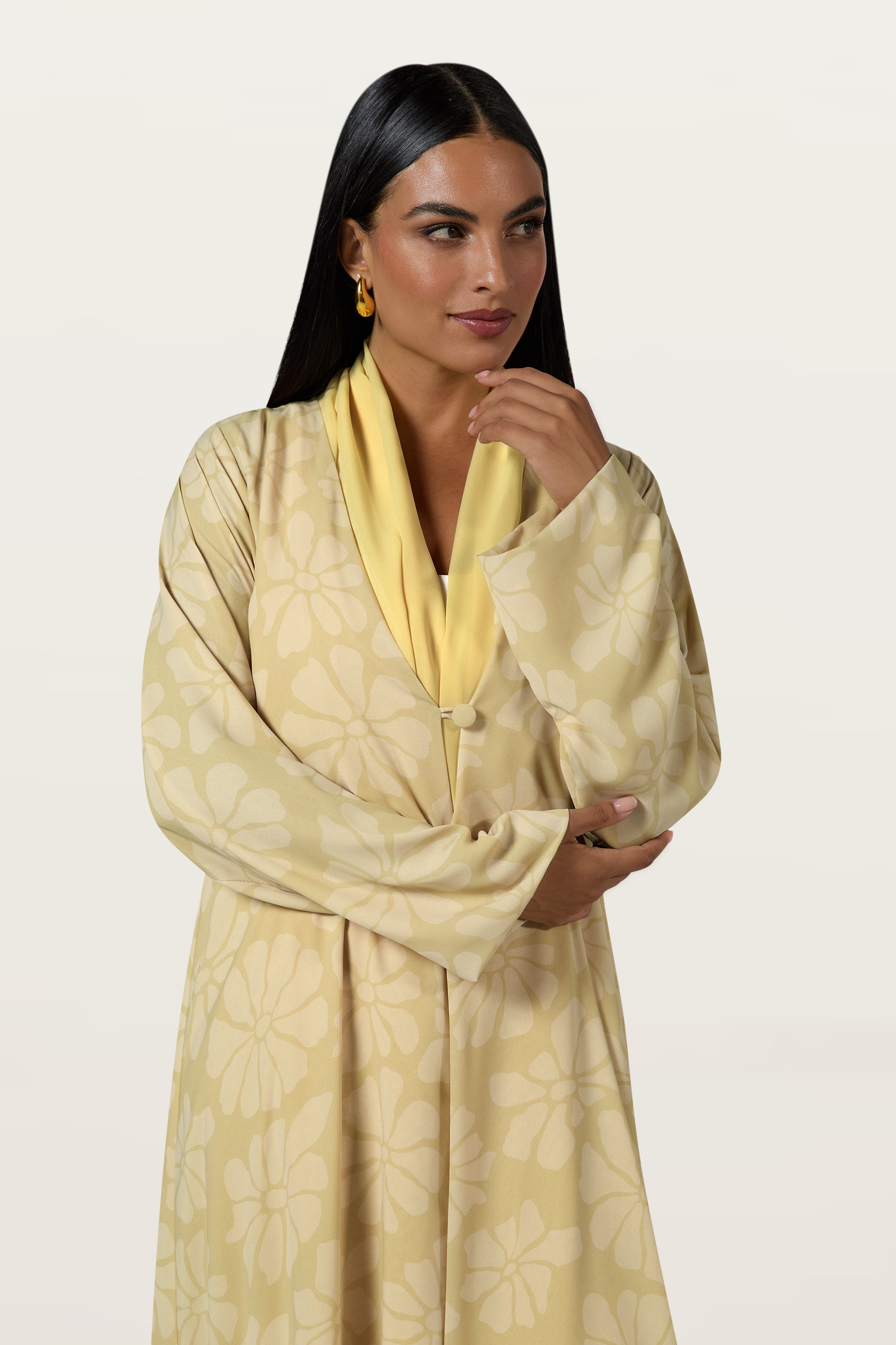 - Abaya fabric; printed chiffon with plain chiffon lining.