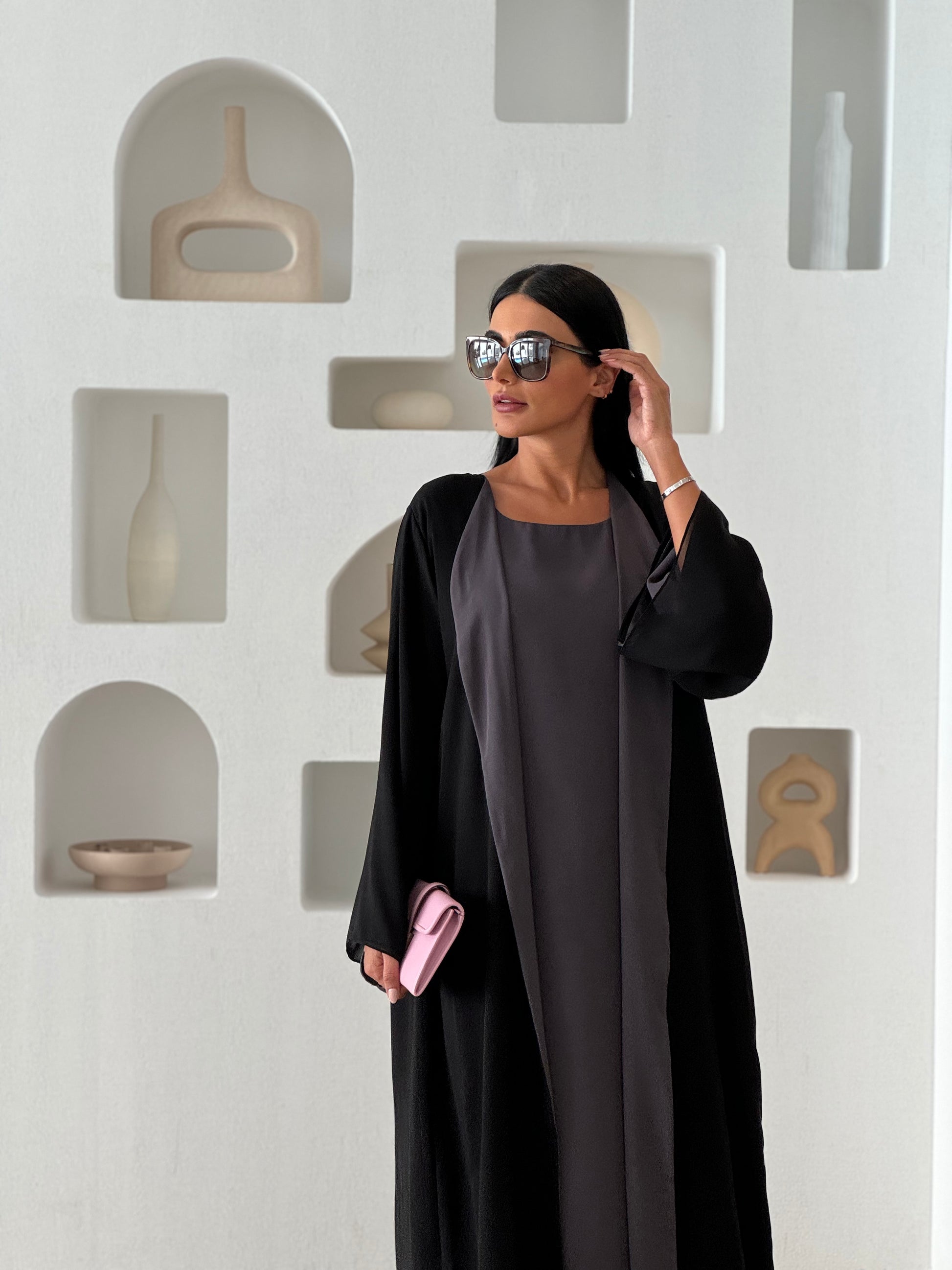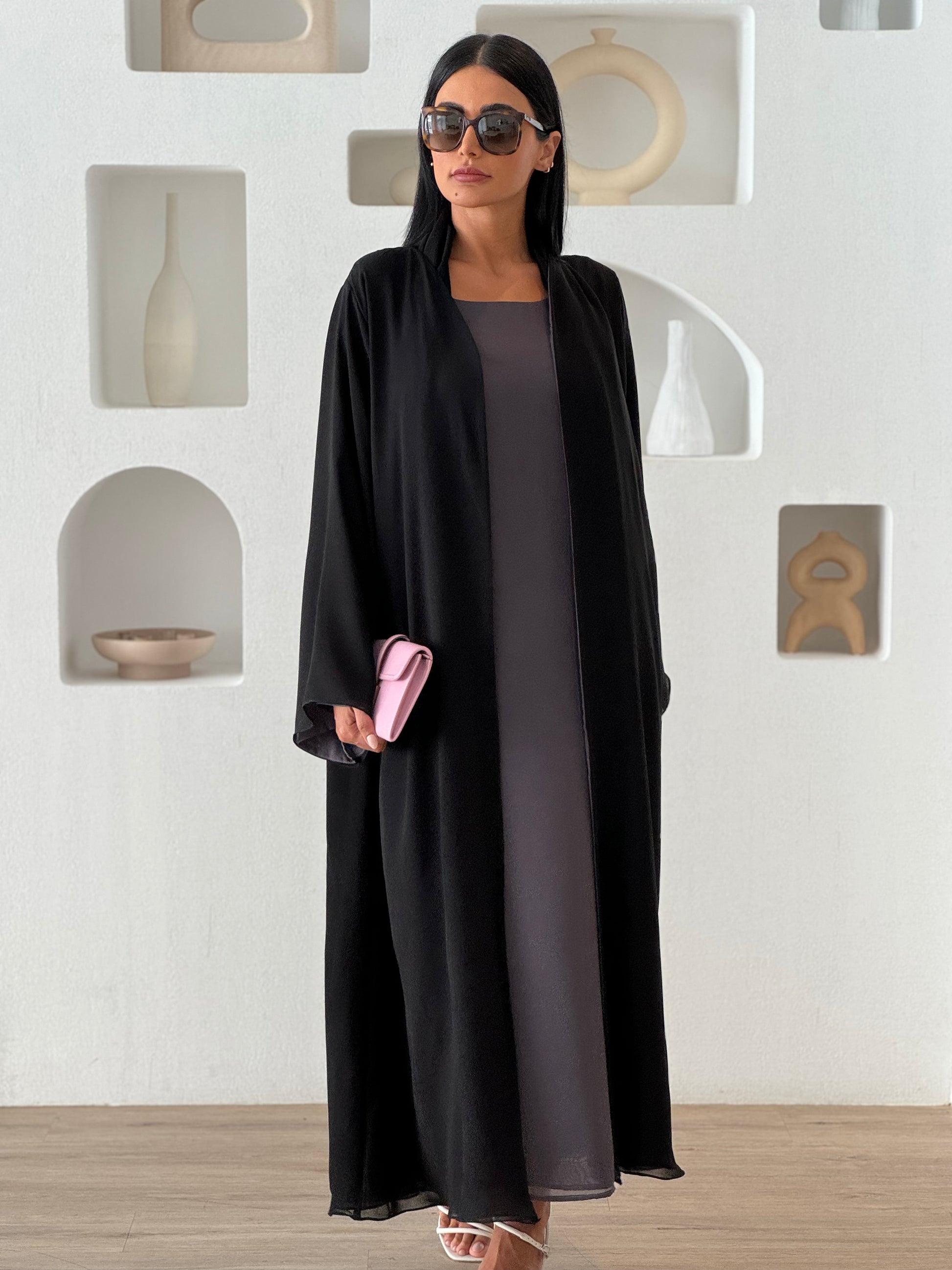 This abaya set includes an abaya, dress and shaila. (fabric is chiffon)